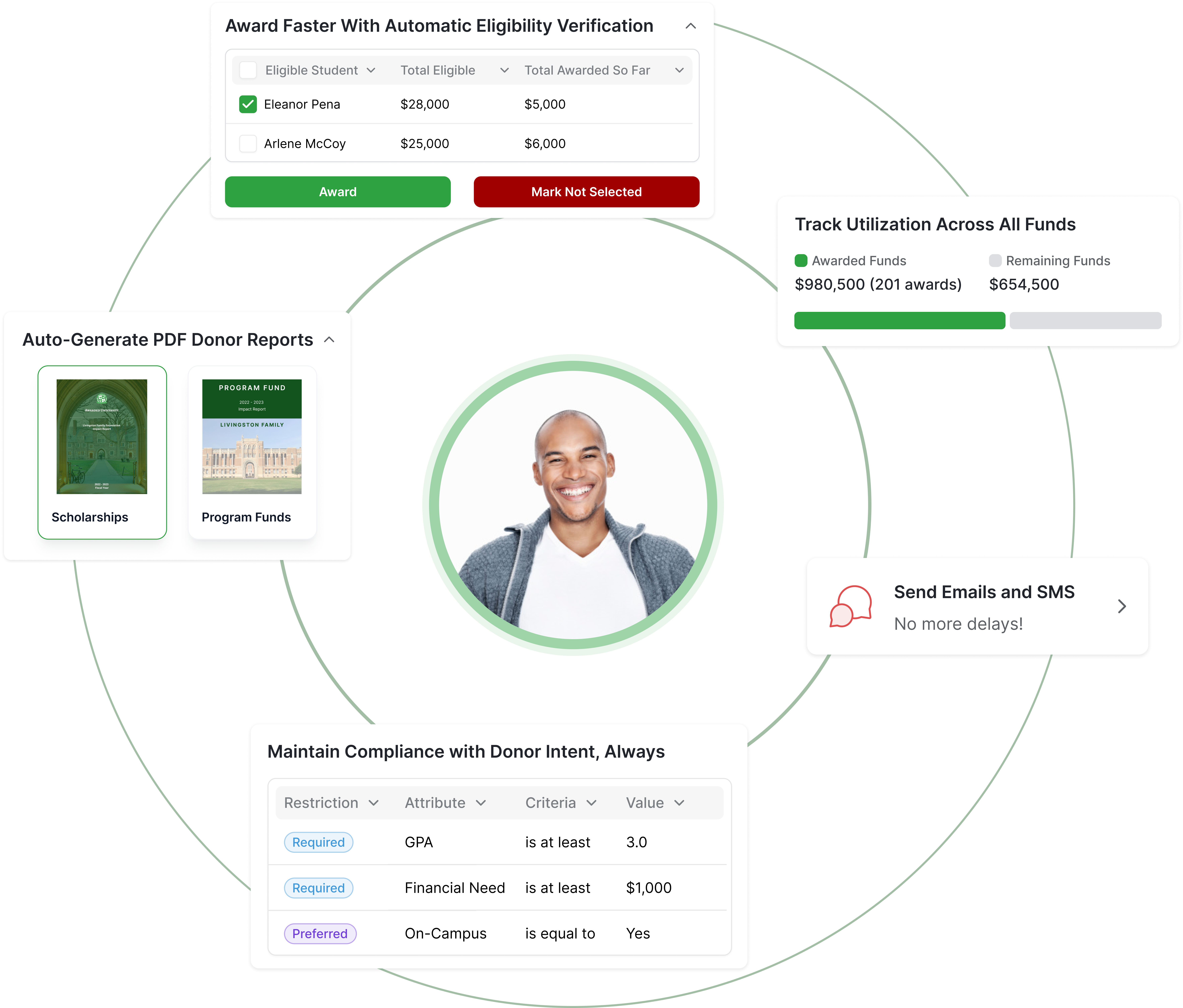Remove bottlenecks to scholarship utilization and accelerate your process across all departments, for both stackable and swappable scholarships